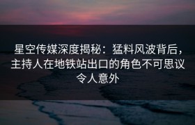 星际传媒深度揭秘:猛料风波背后,主持人在地铁站出口的角色令人震惊 近日,一场关于“星空传媒”的猛料风...