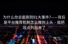 为什么你总能刷到91大事件?——背后是平台推荐机制怎么推你上头 · 我把坑点列出来了 无论你偶尔点进...