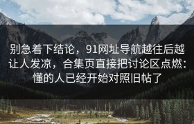 别急着下结论,91网址导航的最新变化 在互联网的浩瀚海洋中,91网址导航曾经是一个备受推崇的宝藏。它...