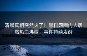 今天清晨,一则爆料突然引发了整个网圈的热议,让无数人从睡梦中被惊醒。就在这个寂静的早晨,一条名为“黑...