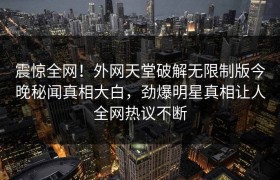 震惊全网!外网天堂破解无限制版今晚秘闻真相大白,劲爆明星真相让人全网热议不断