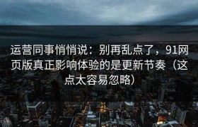 运营同事悄悄说:别再乱点了,91网真正影响体验的是搜索关键词(真的不夸张)