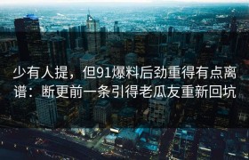 少有人提,但91爆料后劲重得有点离谱:断更前一条引得老瓜友重新回坑